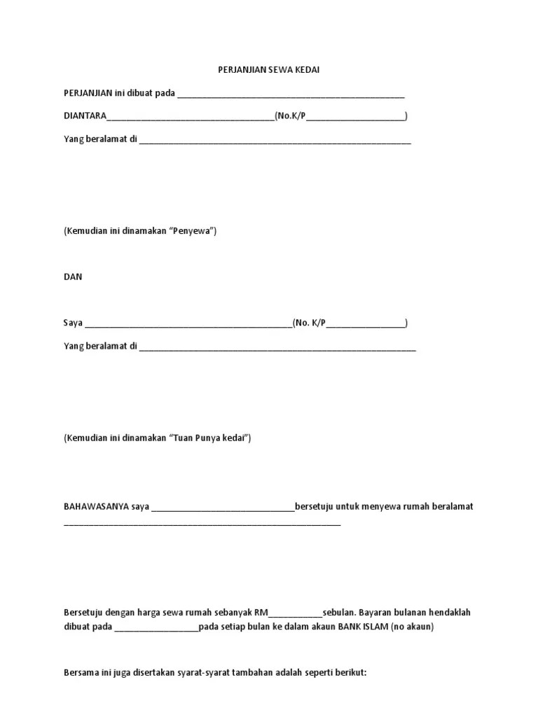(muka surat 5 perjanjian) serahan dokumen perjanjian contoh perjanjian dengan satu garisa … Contoh surat perjanjian sewa rumah yang ringkas dan lengkap (simple tenancy agreement in malaysia) dengan versi terbaru untuk tahun 2021!lebih padat dan lengkap untuk melindungi rumah sewa anda daripada tindakan penyewa yang bermasalah! Dikatakan ringkas karena tidak terlalu banyak … Di sini, kami ingin membawa anda untuk selami apakah kriteria atau syarat penting dalam sesebuah perjanjian sewa rumah lengkap, ringkas … Barang berharga seperti motor harus memiliki dokumen untuk mengesahkan hak kepemilikannya.